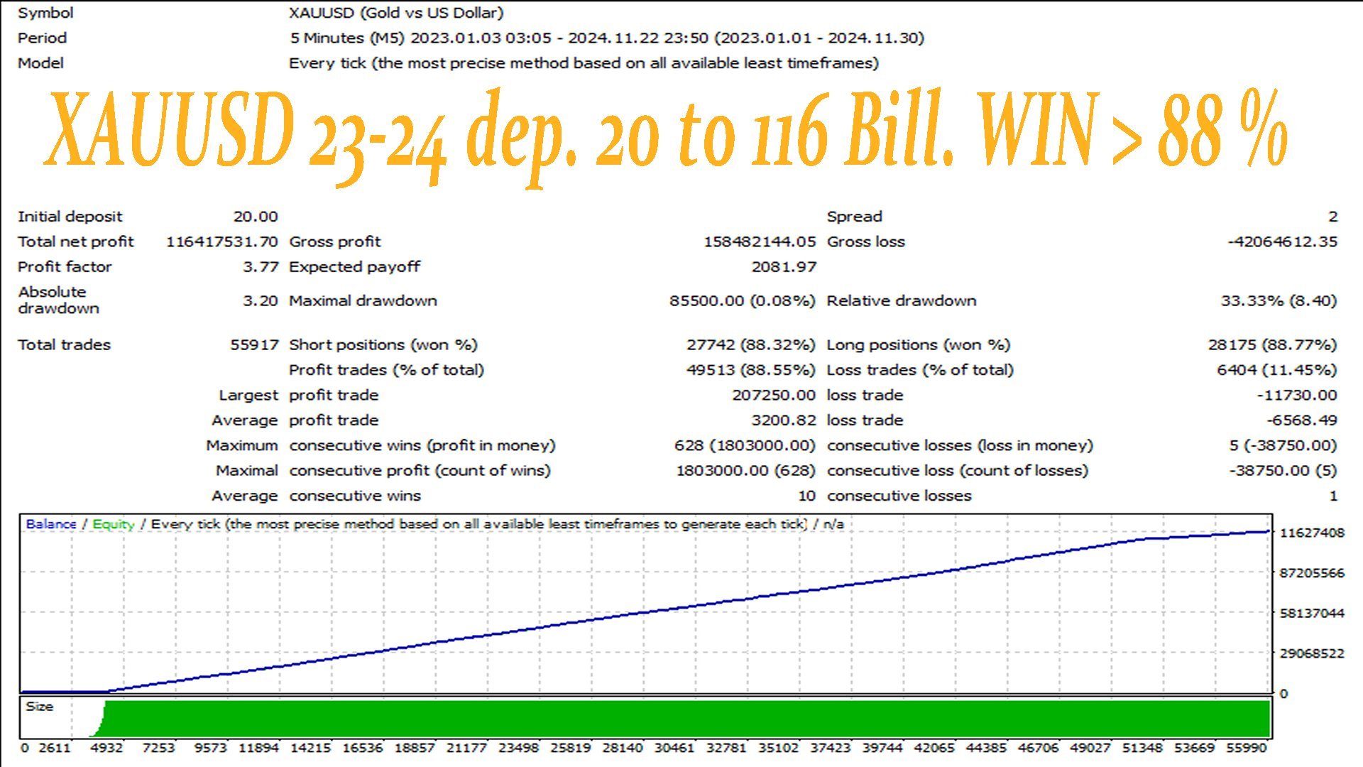 The backtests shown (e.g. in the screenshots) are highly optimized to find the best parameters, but therefore the results cannot be transferred to real trading.