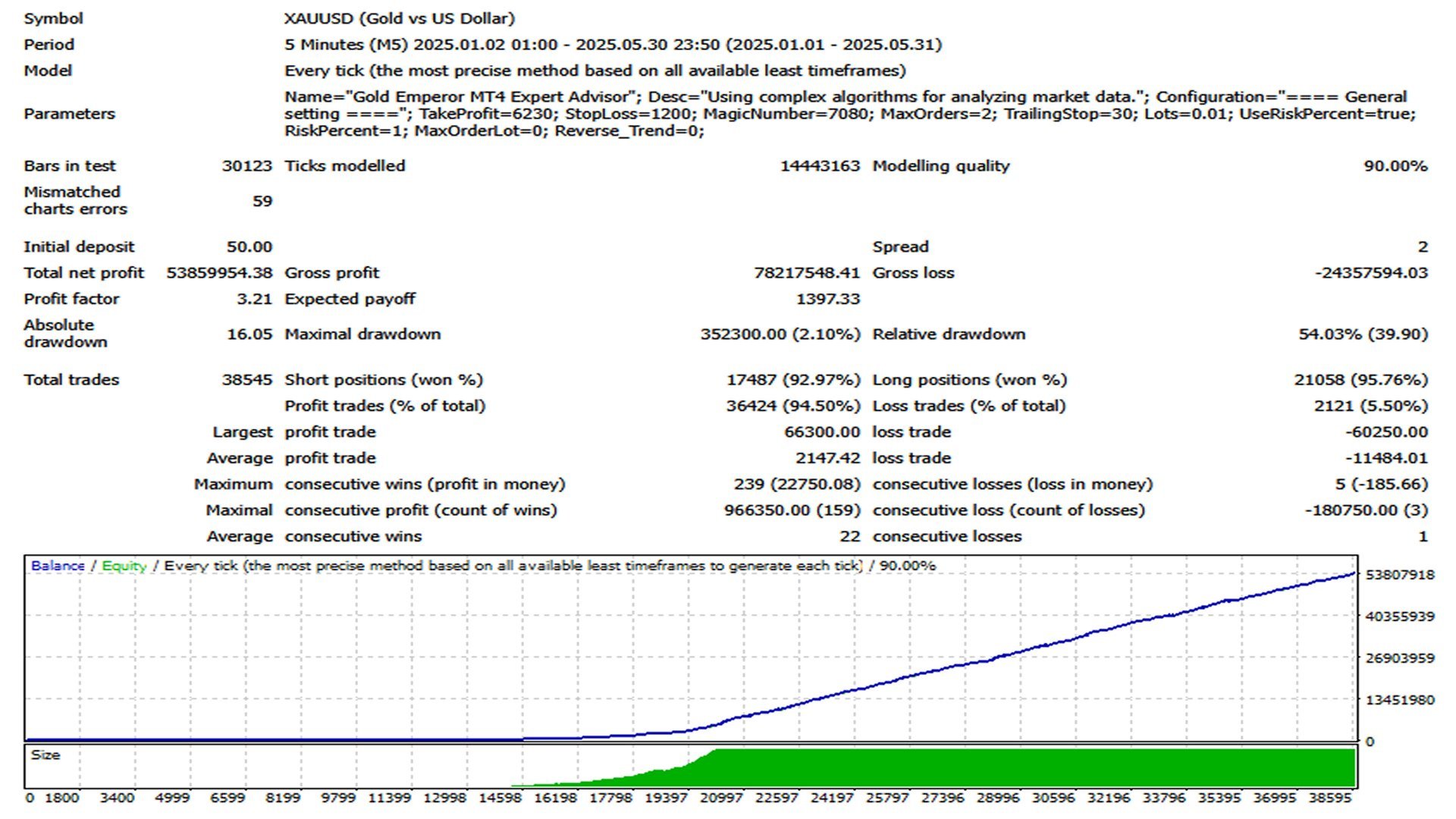 Adaptive Trading Strategy: Gold Emperor EA uses a combination of technical indicators and price action analysis algorithms to determine optimal entry and exit points. The strategy adapts to changing market conditions, ensuring stable performance.